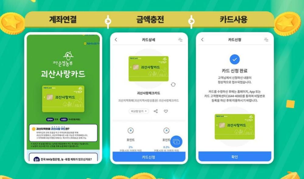 괴산사랑카드는 기존 지역화폐 시스템을 활용해 지급됩니다.