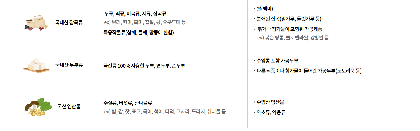 농식품 바우처로 구매 가능한 품목은 국산 과일과 채소, 흰우유, 신선알, 육류, 잡곡, 두부류 등 기본 식재료로 제한돼 있으며, 가공식품이나 비식품 결제는 허용되지 않습니다.