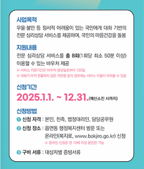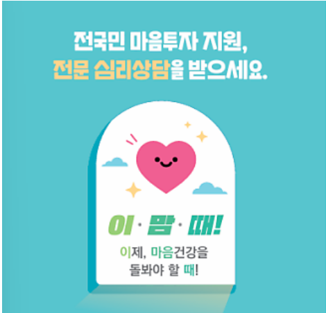 경제적 부담 없이 전문적인 상담을 받을 수 있는 전국민 마음투자 지원사업. 마음 건강은 미룰 수 없는
