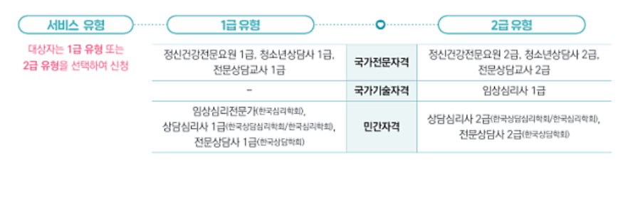 · 2급 유형 (상담비 7만원) : 정부가 전액 지원 → 본인 부담 없음
