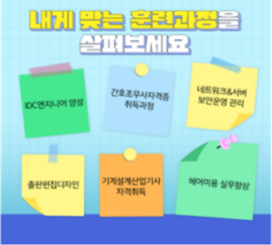 특히 IT, 디자인, 마케팅, 외국어 등 실무 중심의 과정이 많아 직무전환이나 재취업 준비자에게 실질적인 도움이 됩니다.