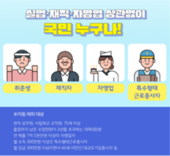 국민내일배움카드는 대부분의 국민이 신청할 수 있지만, 취업상태나 소득수준에 따라 조건이 달라집니다.