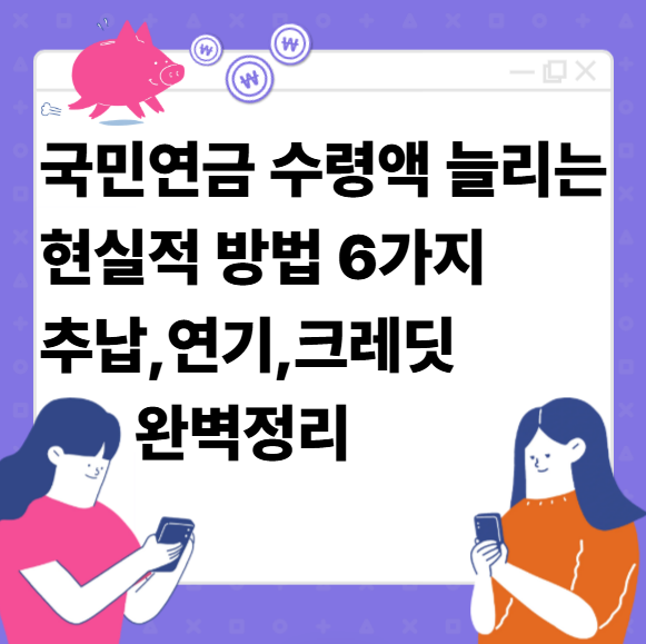 이 글에서는 국민연금 수령액을 높이는 6가지 전략을 구체적 수치와 제도 근거를 기반으로 정리했습니다.