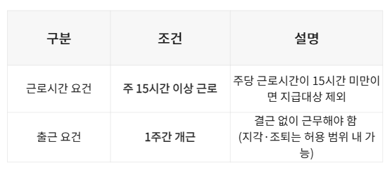 2025년 주휴수당 지급대상은 다음 두 가지 조건을 모두 충족해야 합니다.