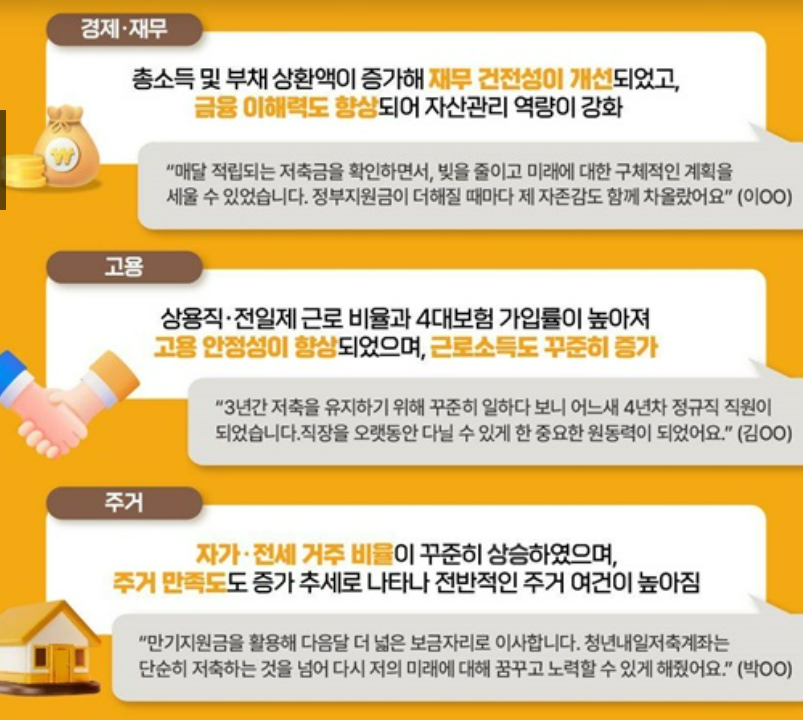 또한, 만기 해지자에게는 금융역량 강화 교육이 제공되어 목돈 활용과 재무관리 역량 향상을 지원합니다.