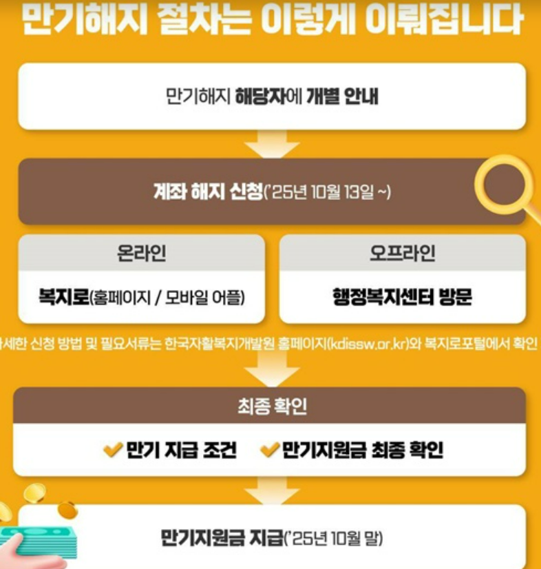 ● 복지로 또는 행정복지센터에서 해지신청 가능