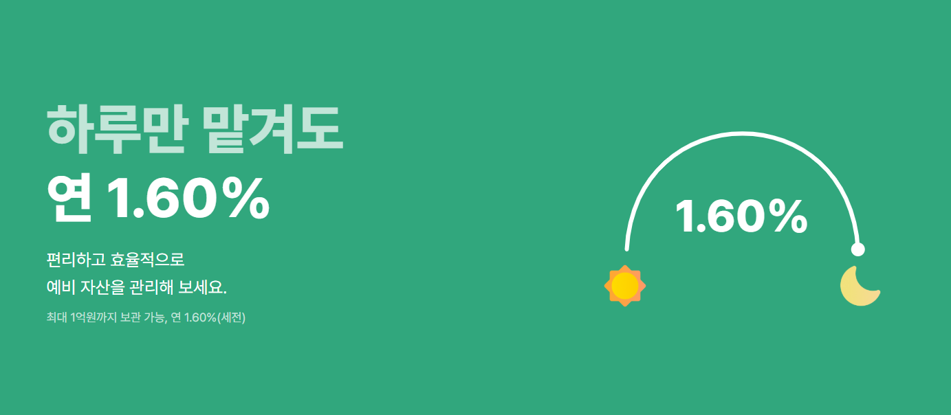 2025년 기준 기본금리는 연 1.8% (세전)이며, 하루만 예치해도 이자가 발생합니다.