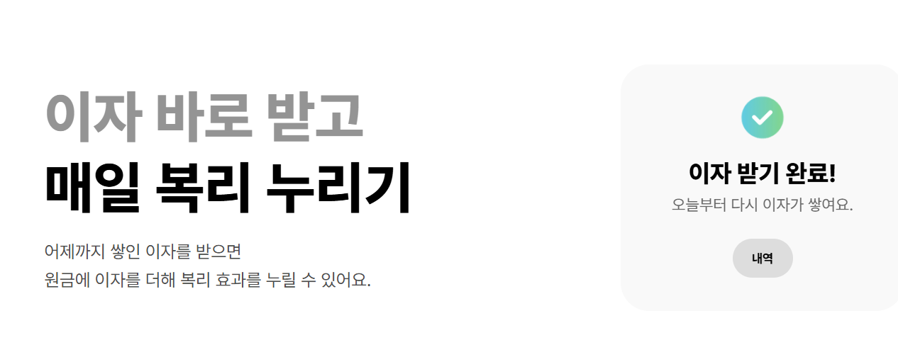 복잡한 조건이나 예치 기간 제한 없이 유연하게 운용 가능하며, 모바일 중심 사용자에게 최적화되어 있습니다.