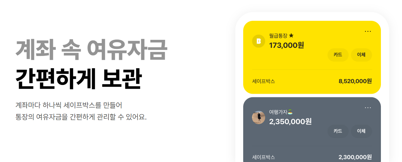 💡 추천 활용법: 급여 일부를 세이프박스로 옮겨두면, 불필요한 지출을 줄이면서 이자도 받을 수 있습니다.