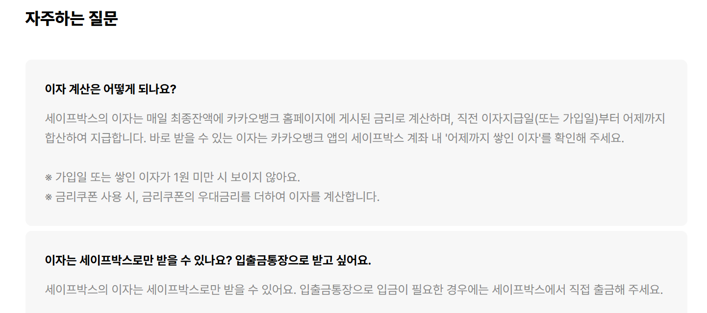 2025년 카카오뱅크 세이프박스 금리 및 이자 계산 방식