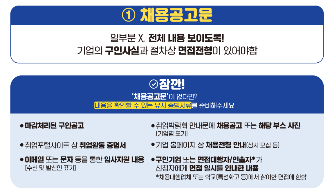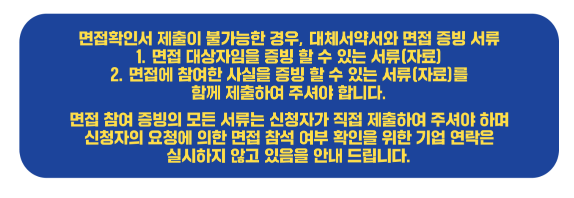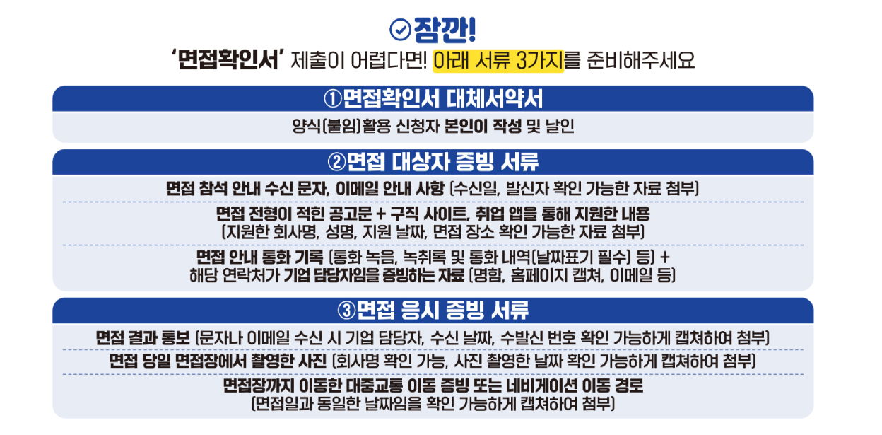 ※ 면접 증빙이 없는 경우 접수가 반려될 수 있으므로, 문자·이메일·면접 확인서 등 자료를 반드시 확보해야 합니다.