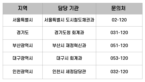 ※ 모든 지역은 정부24 또는 각 시청 콜센터(120) 에서도 연결 안내를 받을 수 있습니다.