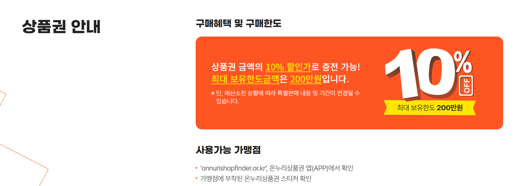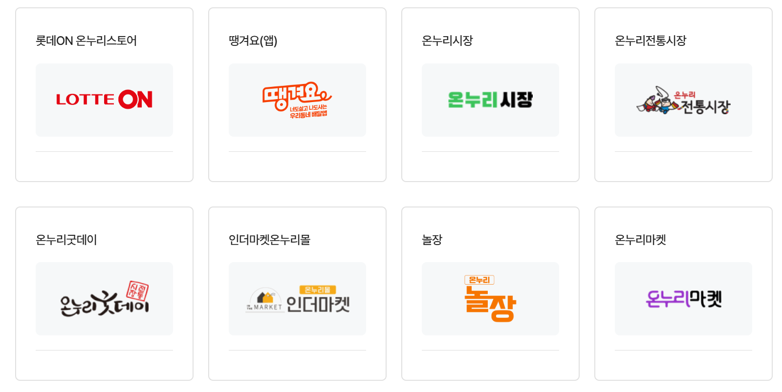 대형마트, 백화점, SSM(기업형 슈퍼마켓), 대형 프랜차이즈, 유흥·사행업종, 일반 온라인 쇼핑몰에서는 사용할 수 없습니다.