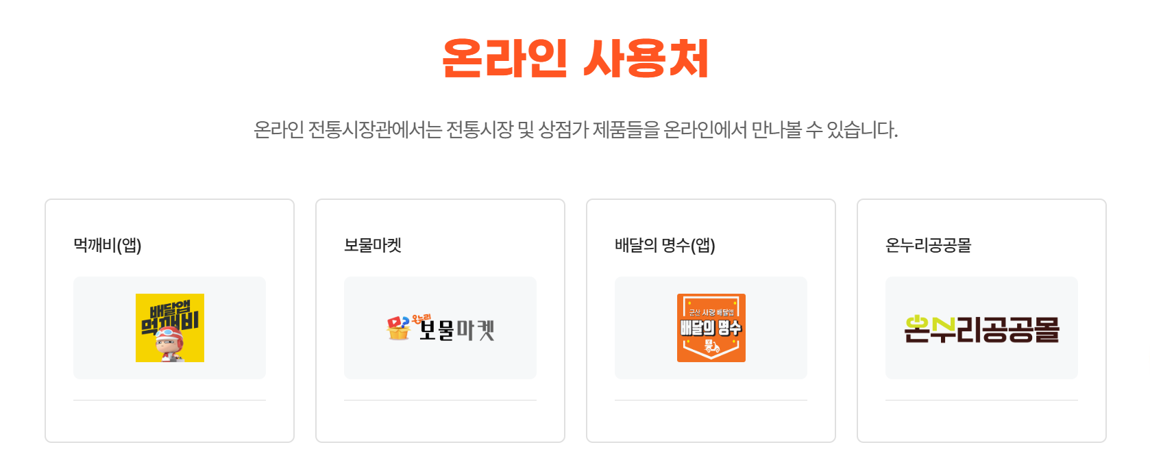 주요 온라인 사용처는 다음과 같습니다.