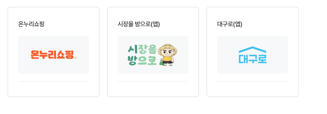 ● 온누리스토어, 온누리시장, 온누리마켓, 온누리쇼핑, 온누리굿데이, 시장을방으로, 대구로 등 지역몰