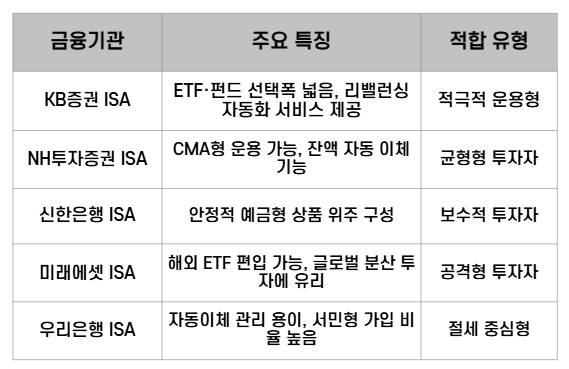 금융기관별 ISA 계좌 추천(2025년 기준 주요 특징 요약)