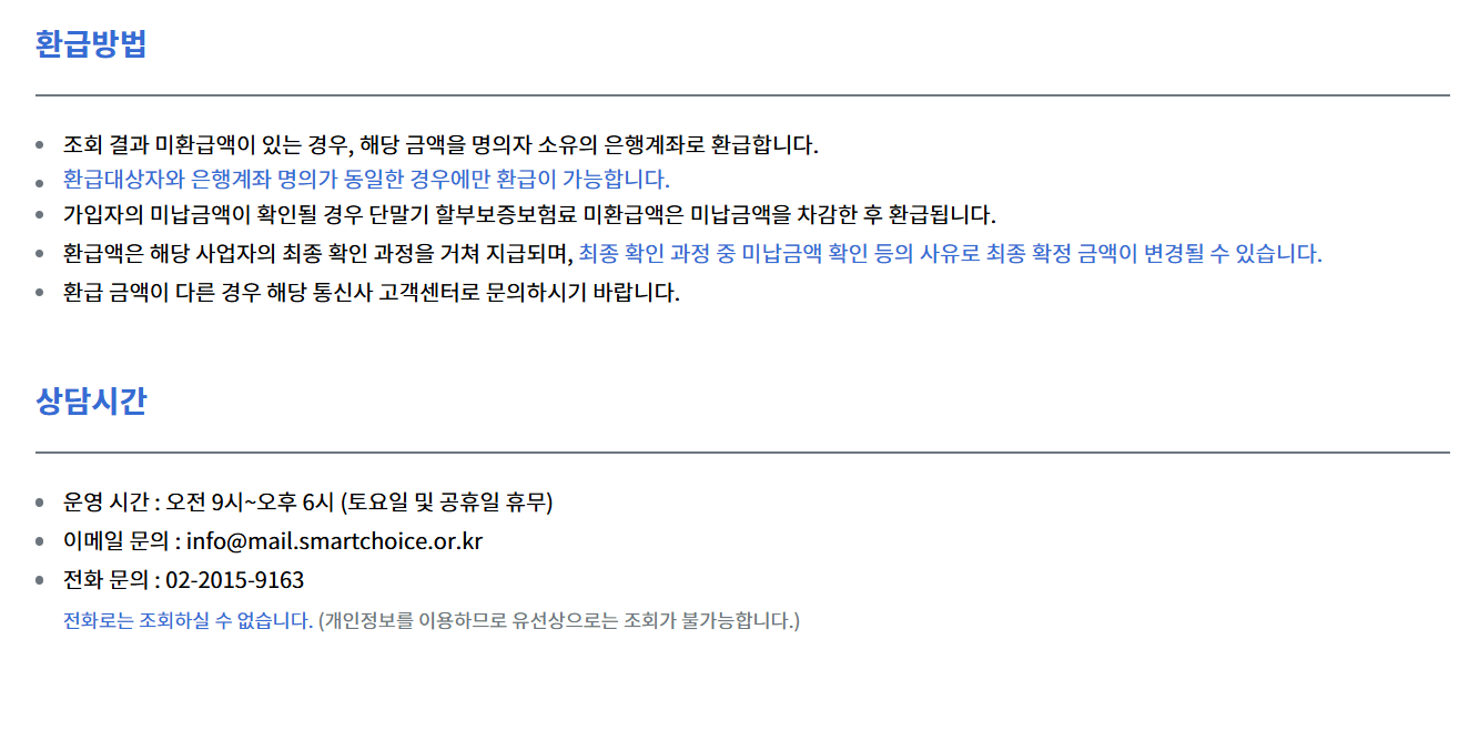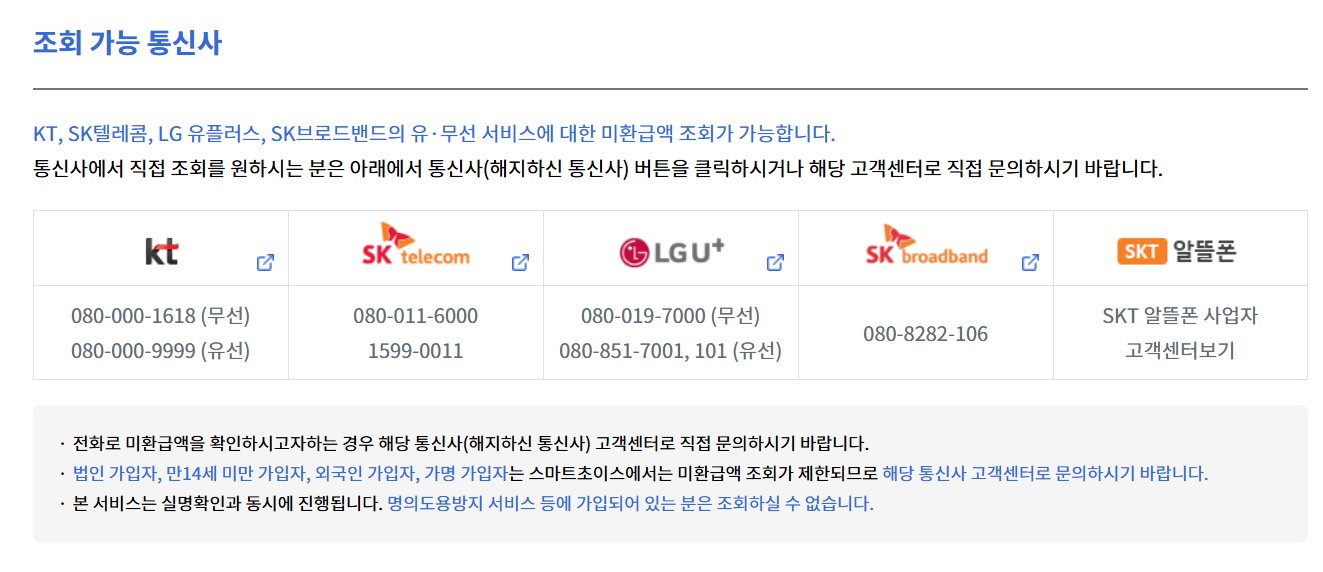 가장 간편한 방법은 스마트초이스 ‘통신 미환급액 조회 서비스’를 이용하는 것입니다.