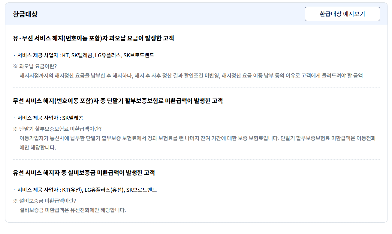 통신비 환급금은 통신서비스 이용자가 계약 해지 또는 번호이동 등을 할 때,