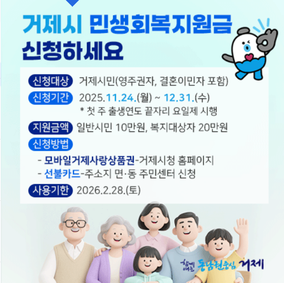 거제시 민생회복지원금은 시민 생활 안정과 지역경제 활성화를 동시에 목표로 추진되는 정책입니다.
