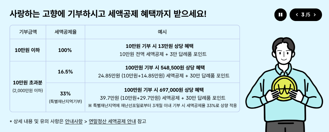 연말은 고향사랑 기부제 참여가 가장 많은 기간이기 때문에 혜택 경쟁이 강해진다.